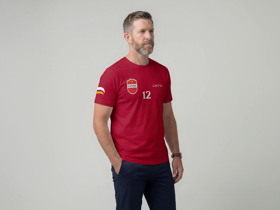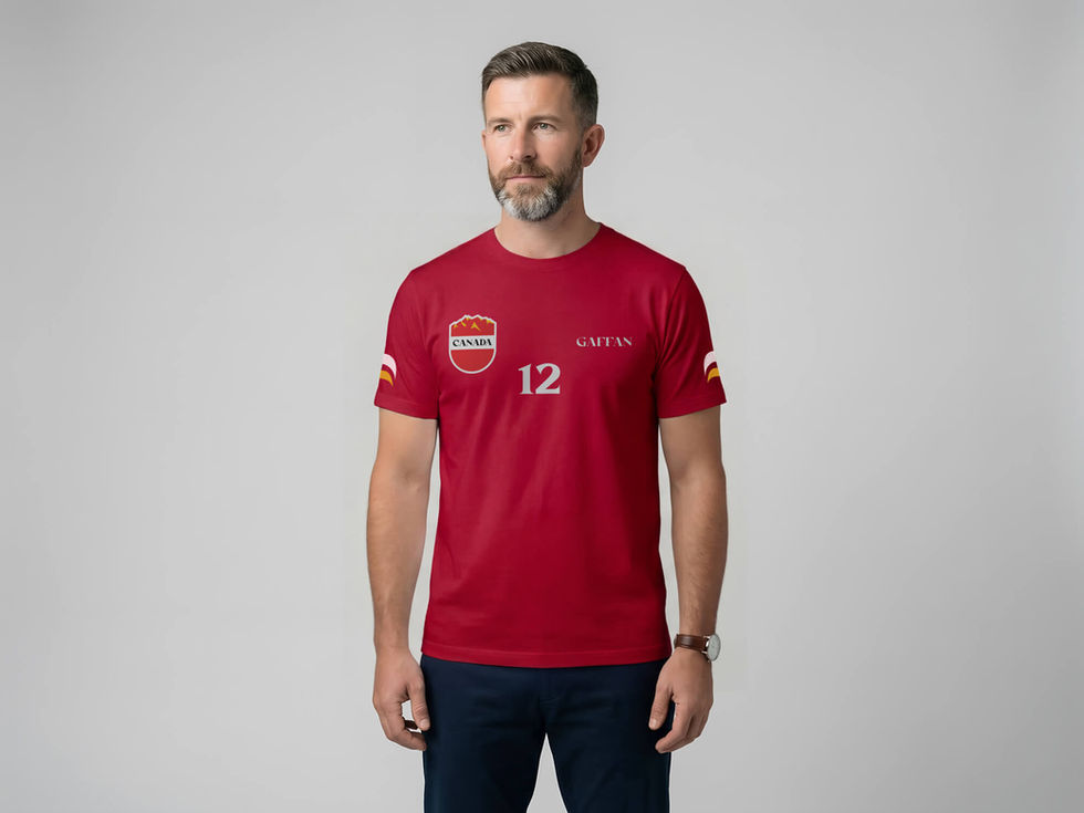 This heritage Canada soccer national team jersey honors the next World Cup hosts with a classic bold red coloring contrasted with contrasting red and white sleeve detailing and playful Canadian Rockies-inspired emblem.